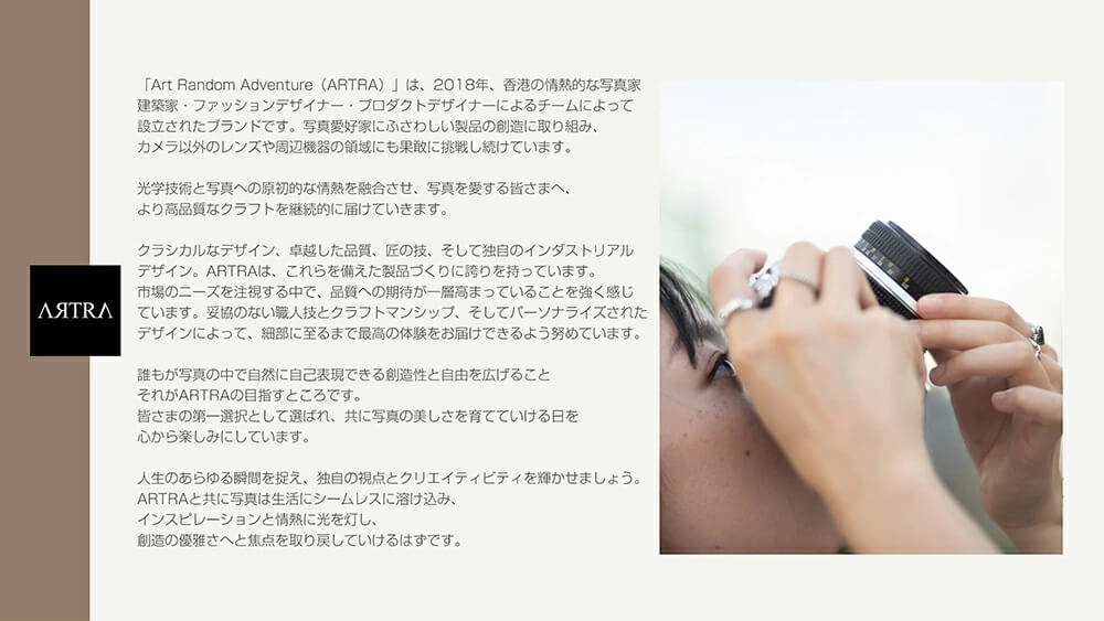 最先端の光学技術にアーティスティックな味わいを加え、心に響く作品づくりを後押しします。