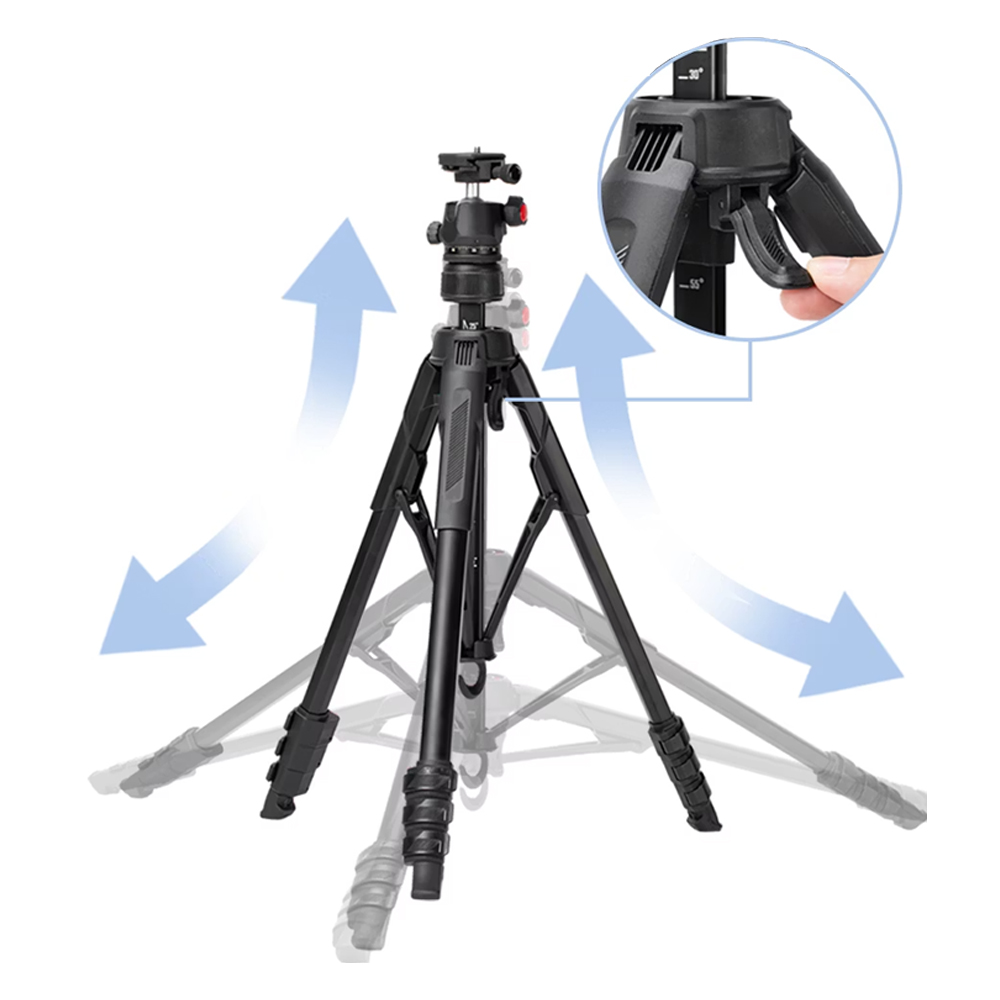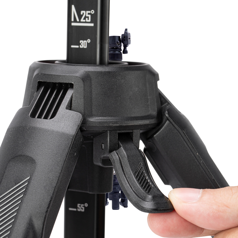 直感的に使えるフリップロックシステムは、レバーを軽く操作するだけで、素早く確実な固定が可能です。また、ワンクリック角度調整機能により、わずか1秒で様々なアングルへの変更が可能となり、決定的な瞬間を逃しません。