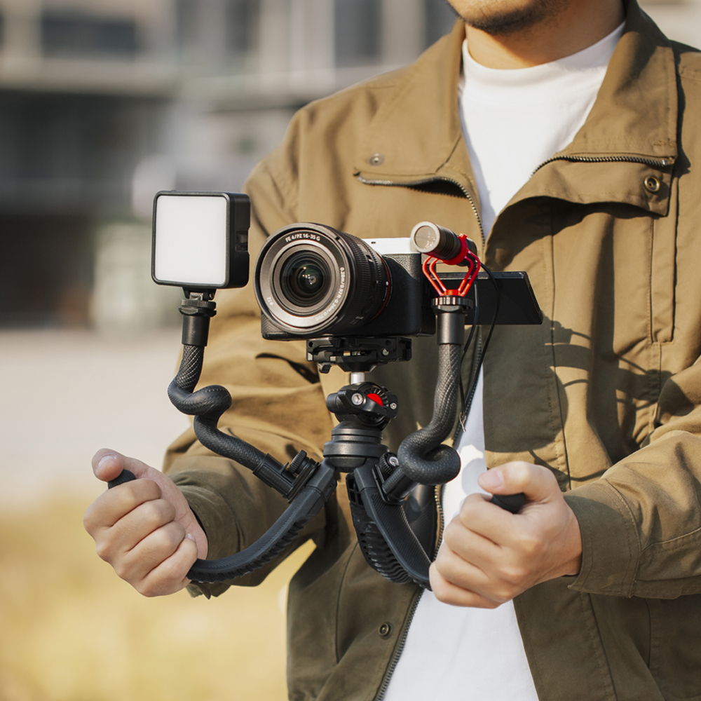 革新的な三脚の開発により、撮影の可能性が大きく広がりました。蛇のような形状からインスピレーションを得た独自のデザインを採用し、従来のタイプとは一線を画す快適なグリップ感を実現しています。