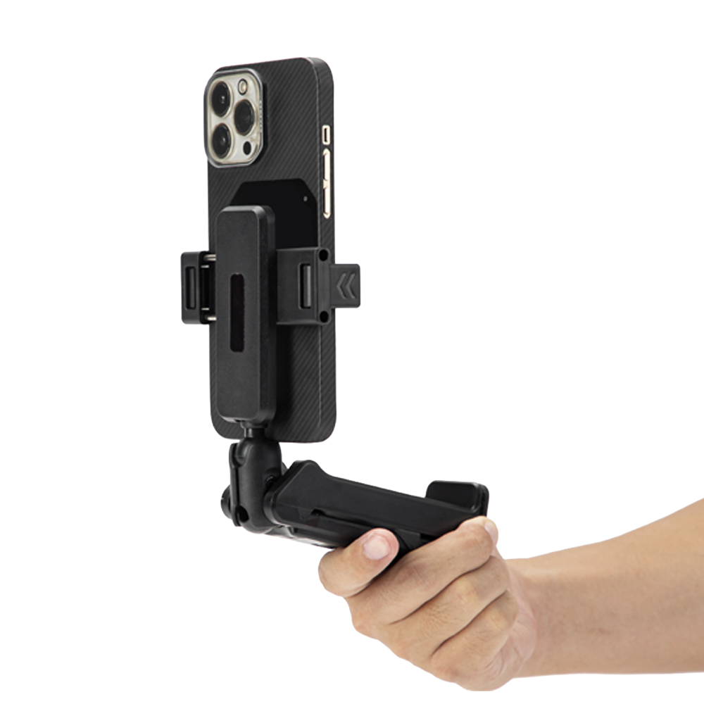 S3Cは、軽量(約159g)で様々なスマートフォンに対応したスマートフォンホルダーです。3Way的な使い回し(例:卓上スタンド/簡易三脚ポジション/アクセサリアーム的活用)を意識したスタイルで携帯に優れており“とりあえず置いてすぐ撮れる、持つことなく見られる”といった即応性に対応することができます。