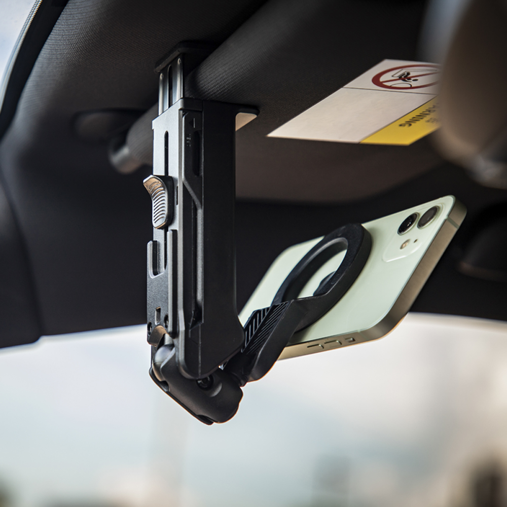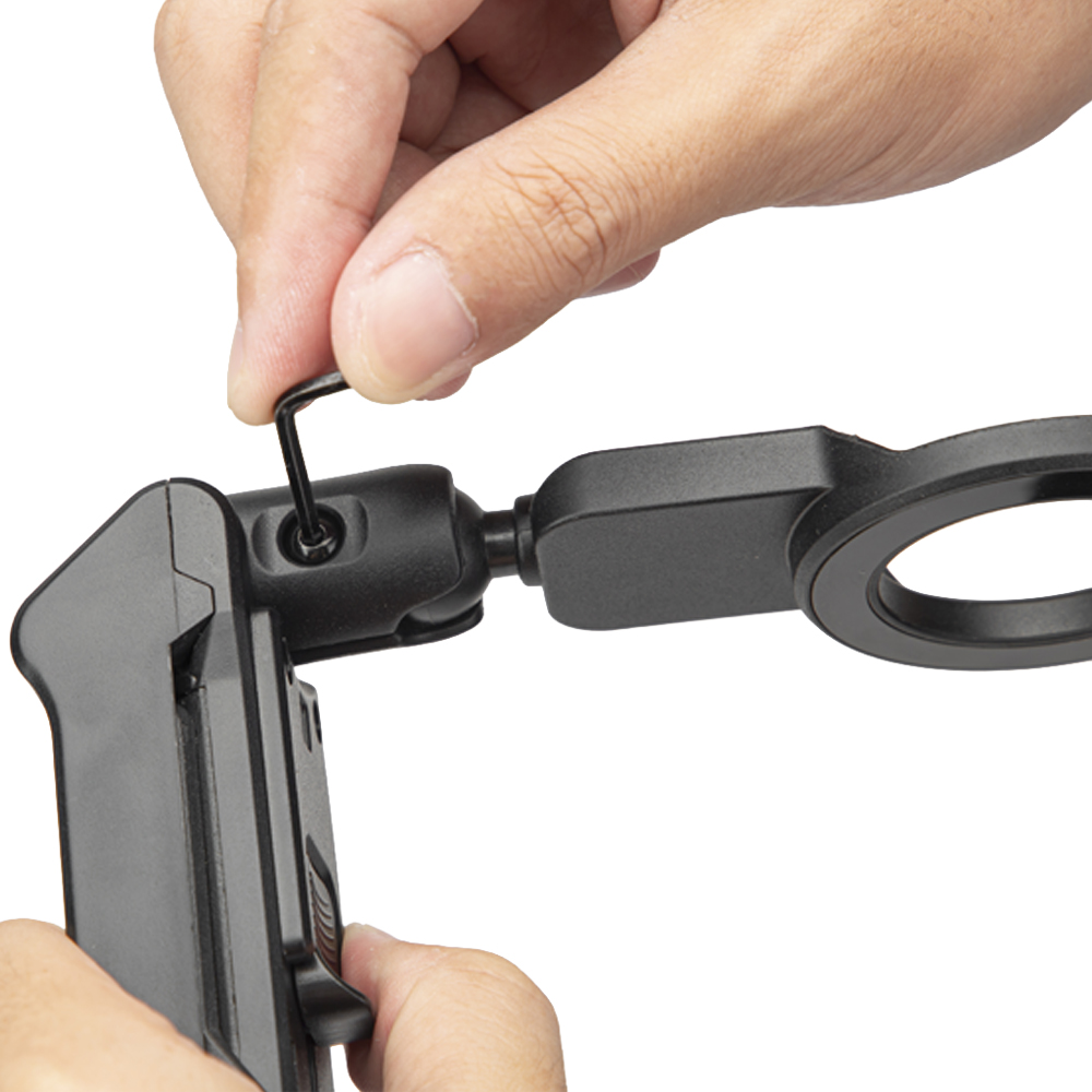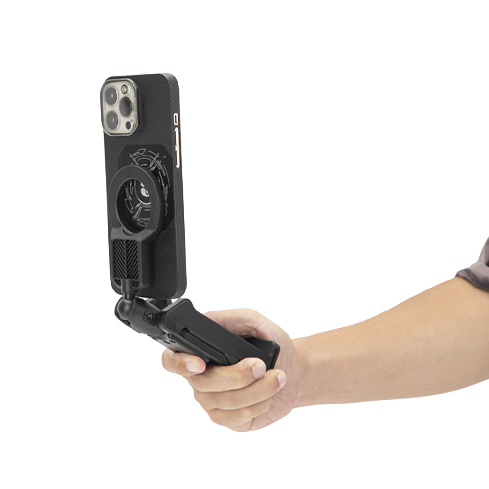 S3MはS3Cの思想をベースに、MagSafe対応スマートフォンをよりシームレスにするための保持力・着脱スピードを最適化したスマートフォンホルダーです。重量約149gで取り回しを保ちながら、物理的バランスに配慮した設計です。縦横の切替はもちろん、様々なポジショニングをスムーズに実現。“装着→外す→装着”といった繰り返し行われるセットアップ時間を短縮します。