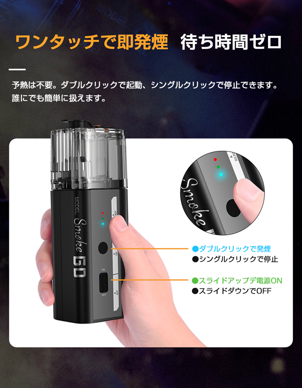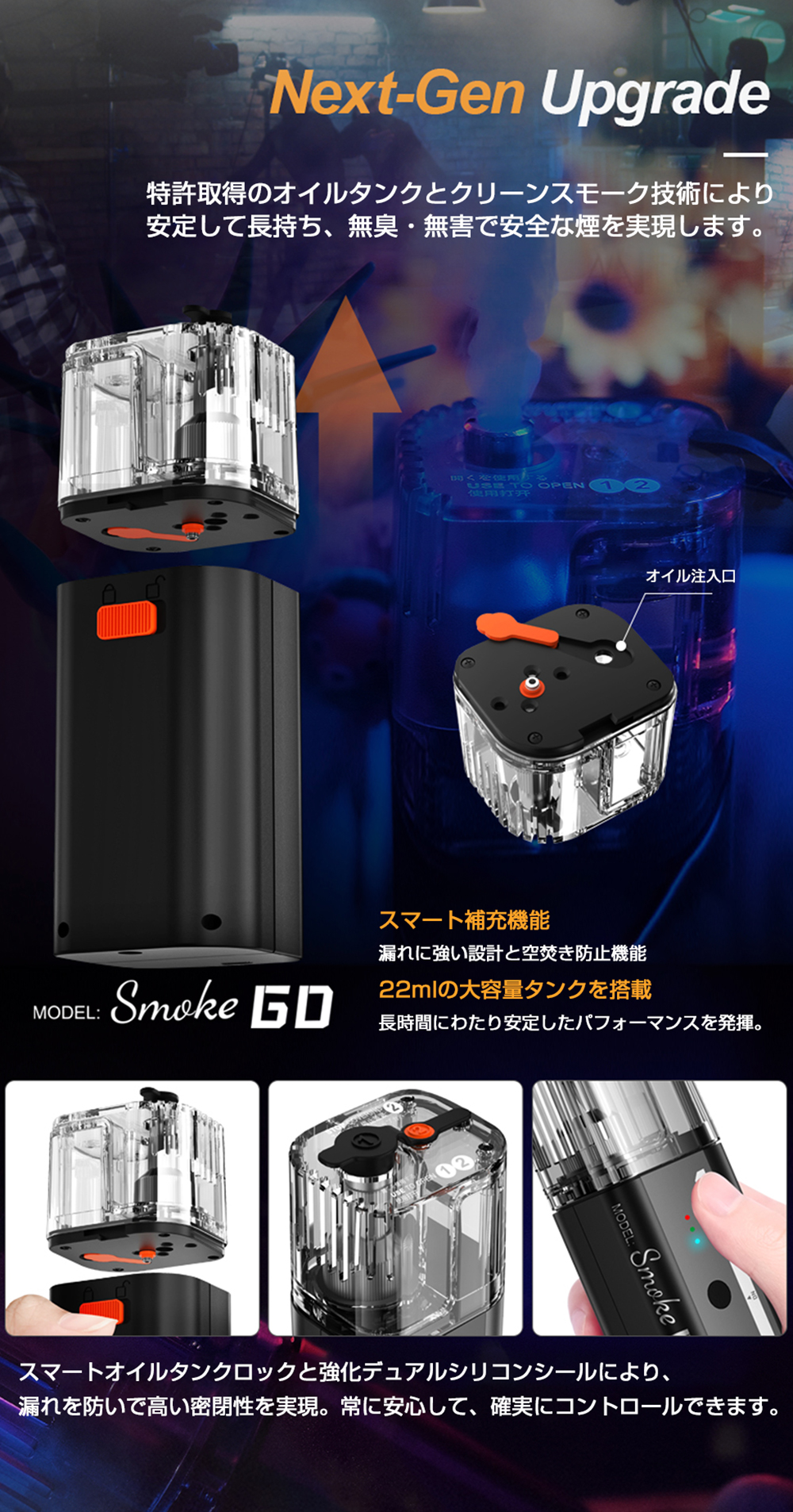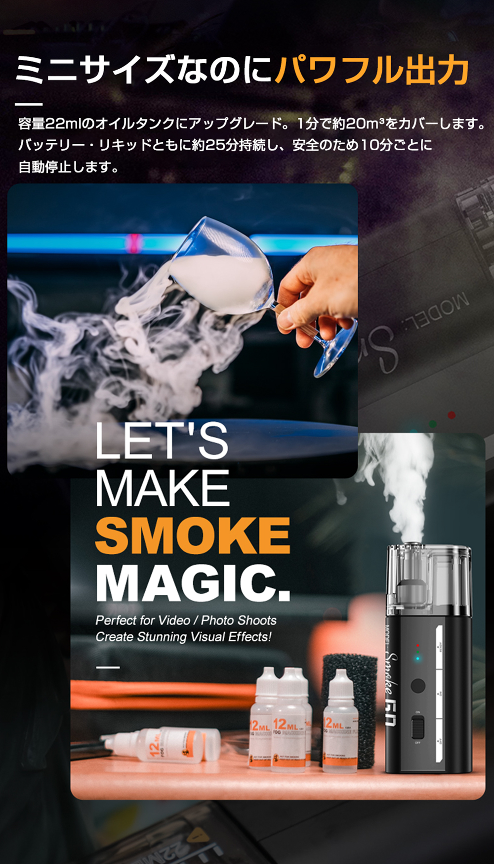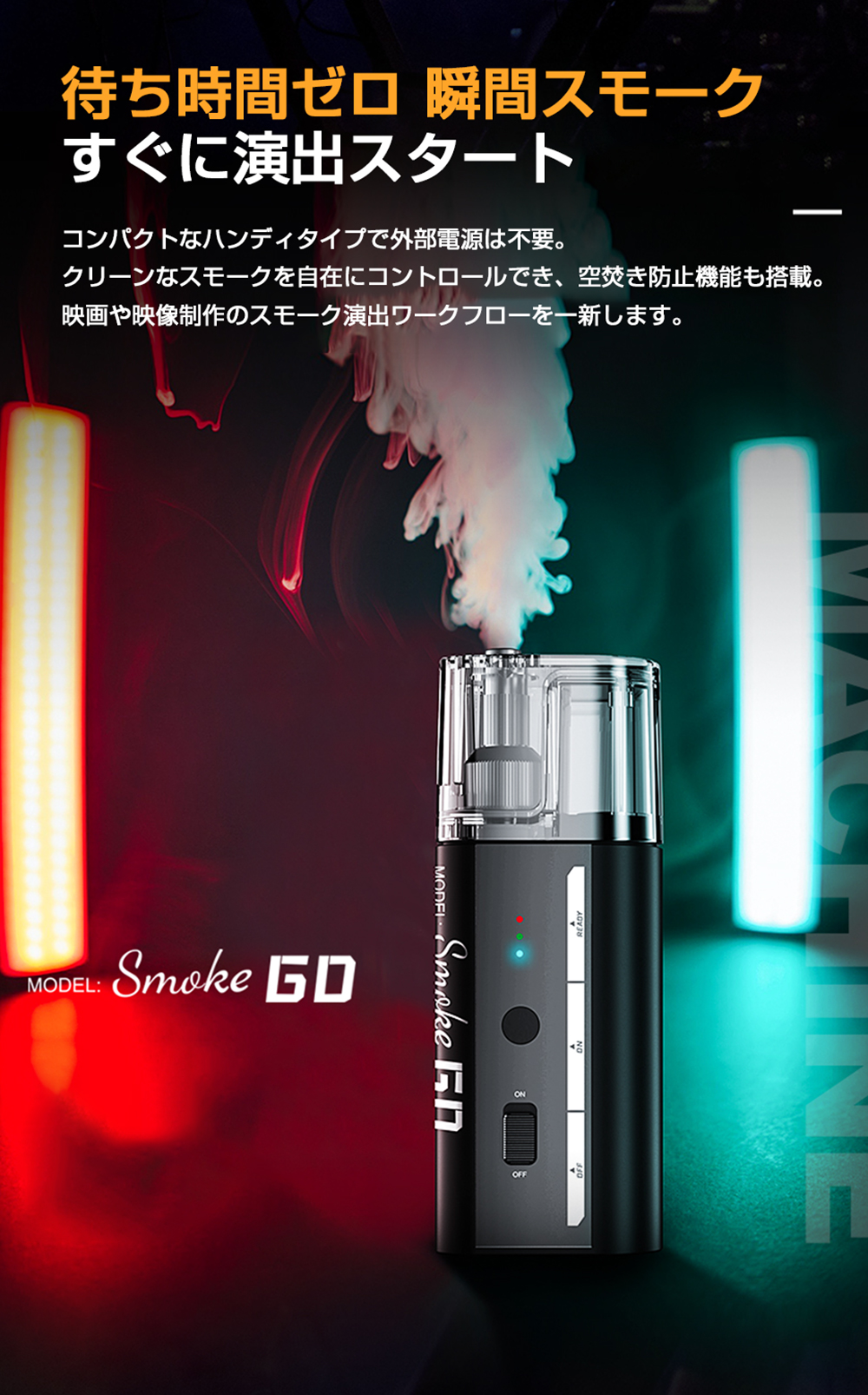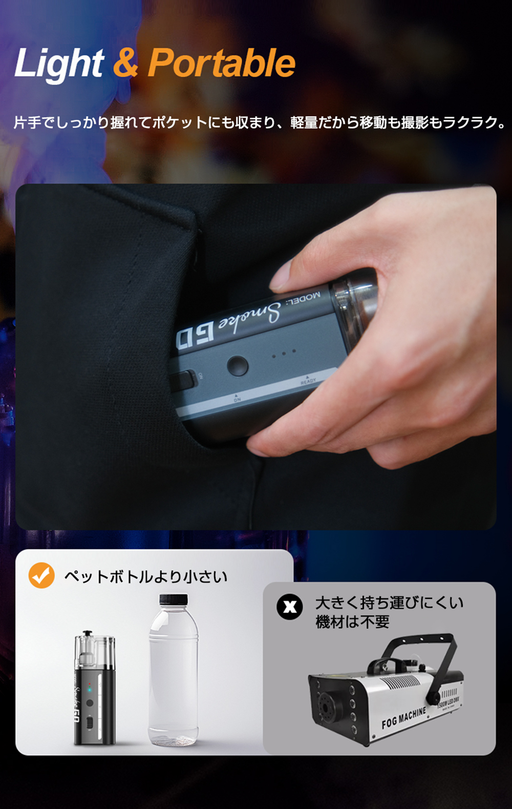 SMOKE GO は、あなたの表現を広げるポータブルフォグマシンです。