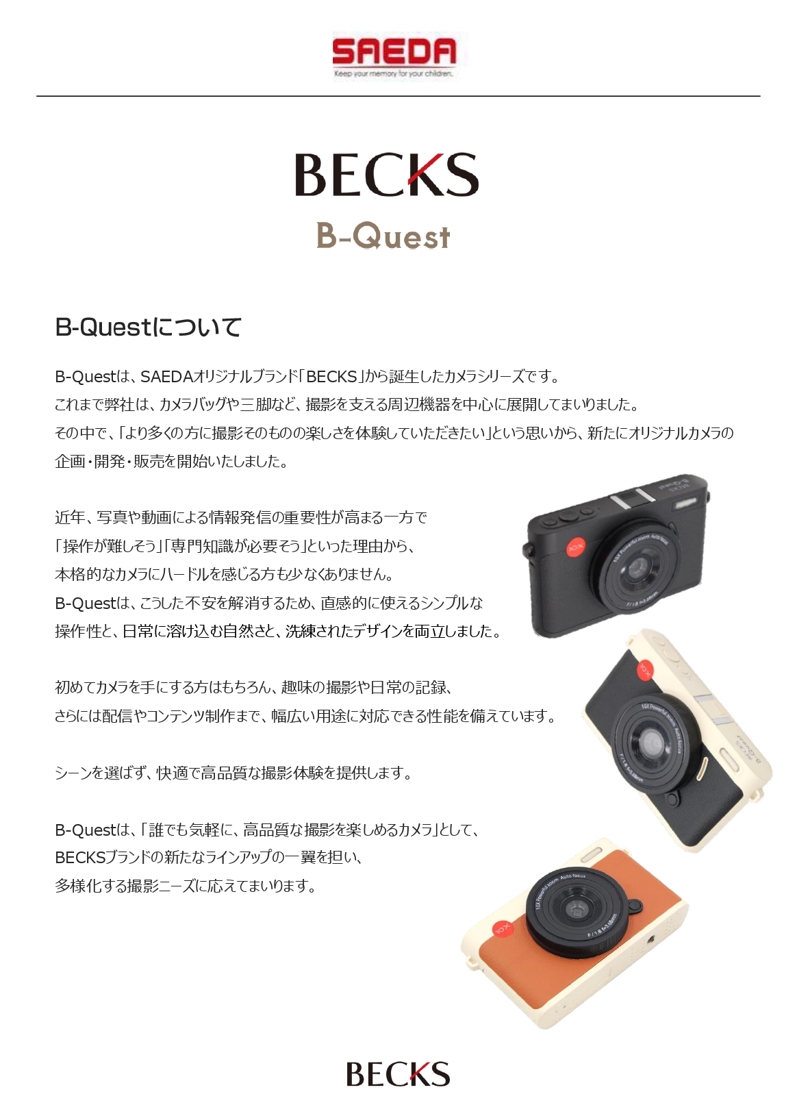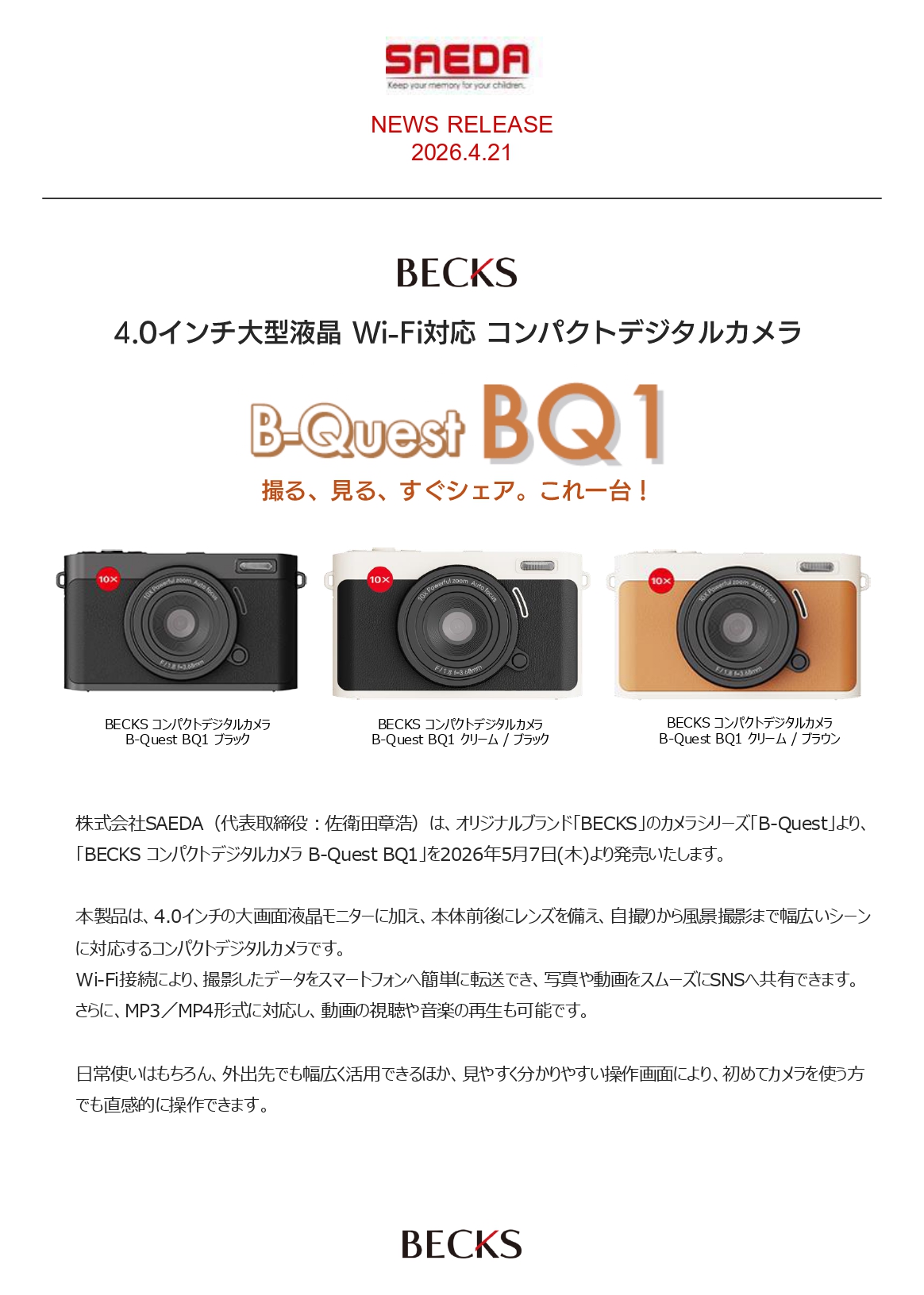 「BECKS コンパクトデジタルカメラ B-Quest BQ1」を2026年5月7日(木)より発売