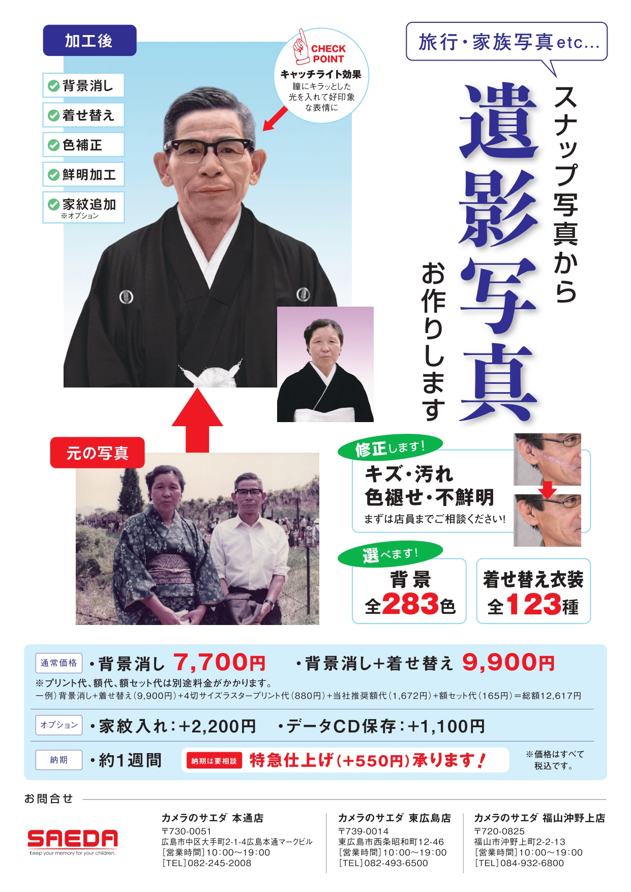 古くなって色褪せてきた肖像写真の作り直しにも是非ご検討ください。